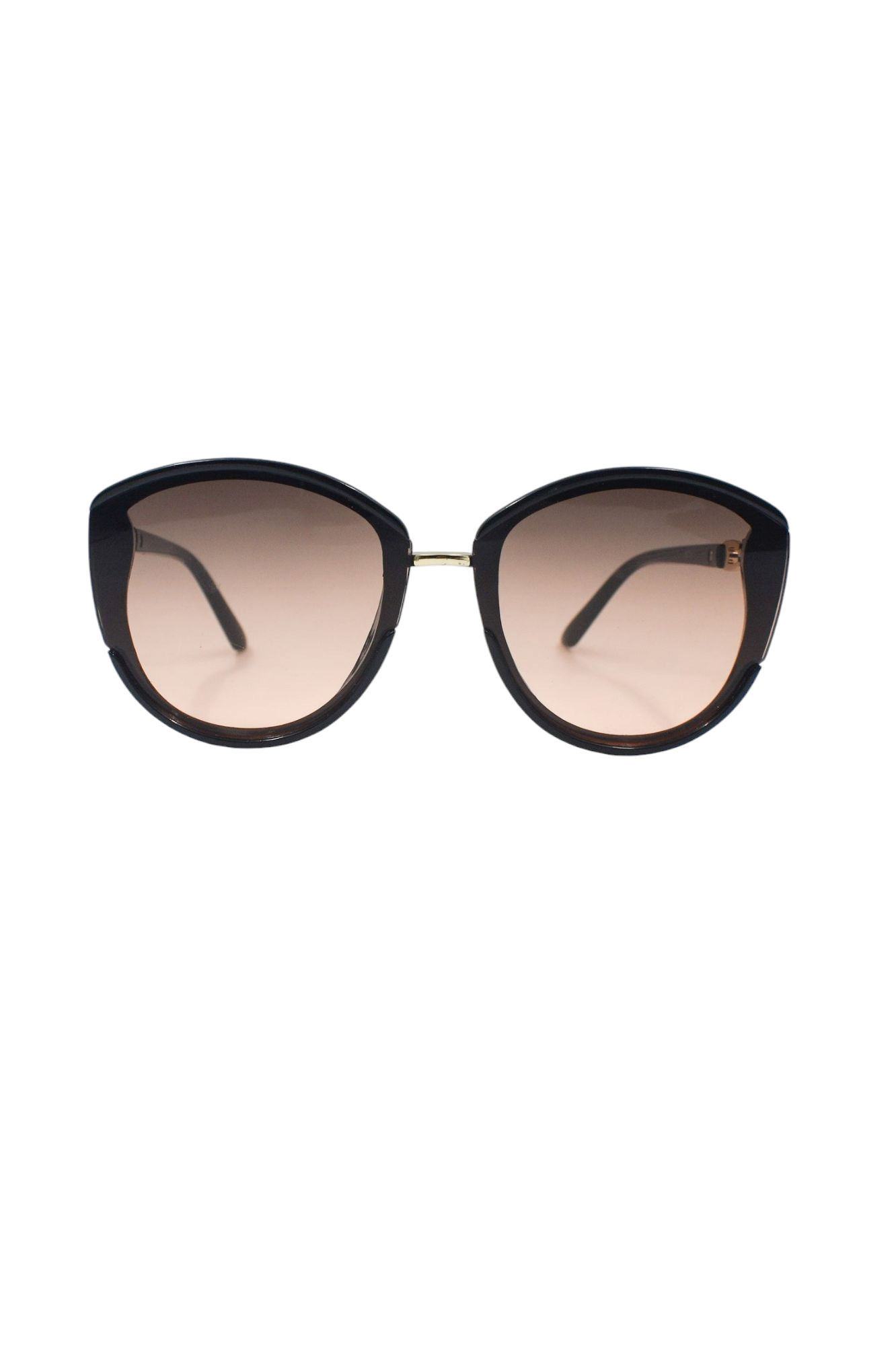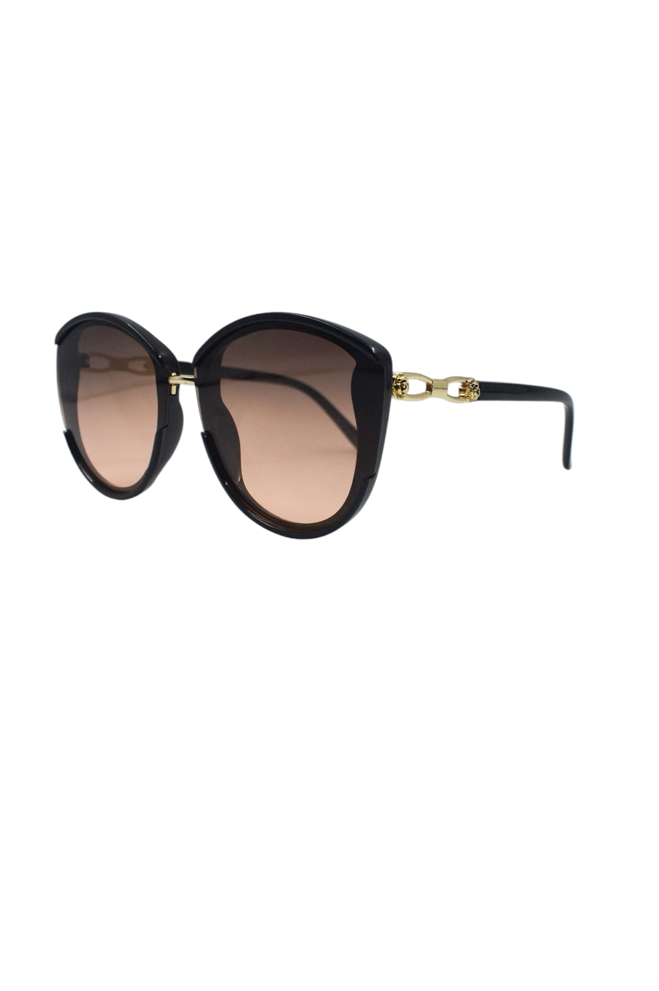 Product Details:Lens Colour: Brown & Light Pink GradientFrame Colour: BlackHandle Colour: Black & GoldenSize: M/LType: AsymmetricTexture: Glossy