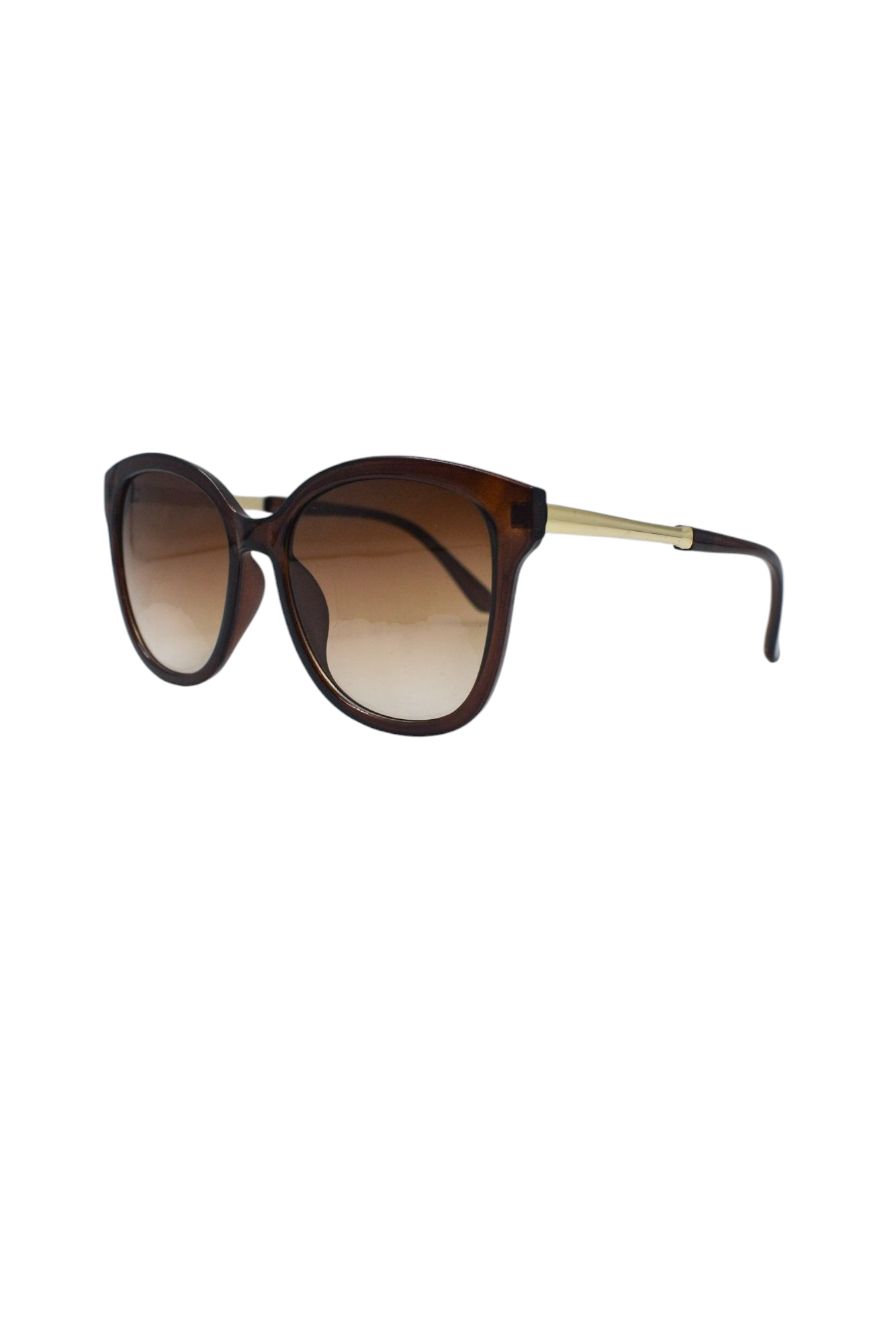 Product Details:Lens Colour: Shaded BrownFrame Colour: BrownHandle Colour: Brown & GoldenSize: M/LType: AsymmetricTexture: Glossy